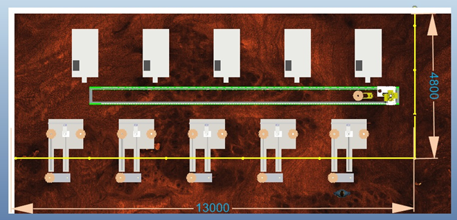 將所有運(yùn)動設(shè)計布置與圍欄內(nèi),可以為工人及其他相關(guān)人員提供一個安全可靠的工作環(huán)境。圍欄布置有檢修門,布置必要的檢測開關(guān),并與整套控制系統(tǒng)聯(lián)動,在設(shè)備正常工作時,假如有人員闖入,將立即停止所有設(shè)備的運(yùn)轉(zhuǎn),確保人員安全。