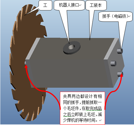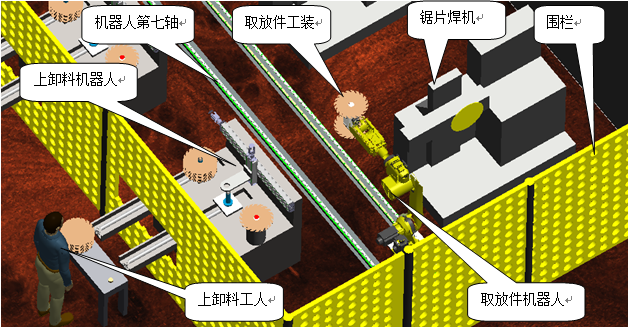 機(jī)器人主要實現(xiàn)鋸片焊接的上下料。