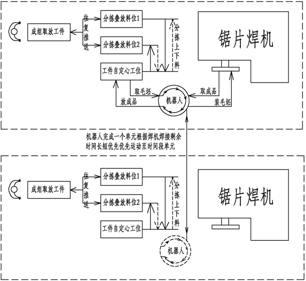 固定單元:鋸片焊機(jī) + 上卸料機(jī)器人系統(tǒng) 數(shù)量五套(由實際鋸片焊機(jī)數(shù)量決定)