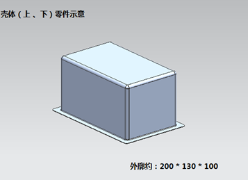 零件完成后外廓尺寸約為200mm X 130mm X 100mm,零件上有多處凸起、沉臺和孔,零件的加工需多序完成。另外上下殼體零件僅有細(xì)微差距、外形上大體一致、在產(chǎn)品裝夾和物流轉(zhuǎn)運(yùn)方面按相同方式考慮。殼體零件大致如右圖所示。