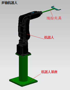 多軸機(jī)器人的顯著特點(diǎn)是柔性極高、適用范圍廣。本方案涉及零件重量~500克,考慮夾具的自重及加長臂等因素,初步選定5KG級加長臂機(jī)器人。同時(shí)為了讓機(jī)器人工作在理想的高度位置需要給其加固定座。