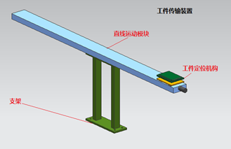 該平臺的作用是將上工序放料位置的工件快速搬運(yùn)到本工序的取料位置。平臺由工件定位裝置、支架和高速直線運(yùn)動模塊等幾部分構(gòu)成。該直線模塊的運(yùn)動速度超過2M/S,實(shí)現(xiàn)工件的快速移動。