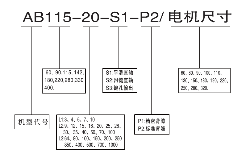 A、    對(duì)用高精度,背隙為3arc-min的需求,我們推薦AB、ABR、SP、SPK、LP、LPK,其中AB、ABR、安裝尺寸偏向于臺(tái)系和日系的減速機(jī)尺寸,SP、SPK、LP、LPK,安裝尺寸接近于歐系的減速機(jī);