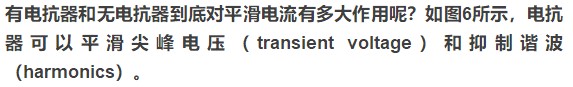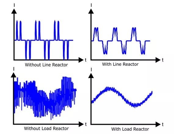可見,通過電抗器的電流頻率越大,阻抗就越大,這就是電抗器能夠平滑尖峰電壓、抑制諧波的原理(戳藍字看諧波)。
