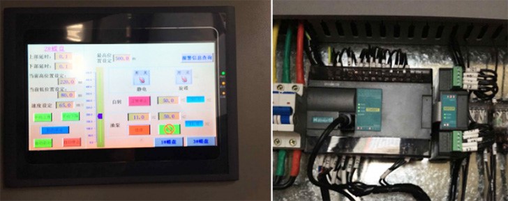 現(xiàn)在要求通過上下移動(dòng)的不銹鋼圓盤高速旋轉(zhuǎn),把霧化后的油漆360°無死角向玻璃瓶外表面噴灑,并通過變頻器調(diào)整玻璃瓶向前走的速度和酒瓶自身旋轉(zhuǎn)的速度。