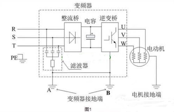 變頻器是高頻方波電壓輸出,由于在電機內(nèi)部線圈與電機外殼之間有等效電容存在,從而產(chǎn)生泄漏電流。如果不接地或接地不良,就會有漏電現(xiàn)象。