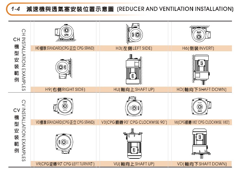 城邦減速電機(jī)提供兩種安裝方式,一種CV系列:法蘭式安裝,又叫立式安裝。一種CH系列是:底座安裝,又叫臥式安裝。說明,法蘭安裝,減速機(jī)的安裝面和減速機(jī)的輸出軸是垂直關(guān)系。底座安裝的減速機(jī)安裝面和減速機(jī)的輸出軸是平行關(guān)系。選擇哪一種安裝方式需要工程師根據(jù)自身機(jī)械機(jī)構(gòu)的特點由于確認(rèn)。