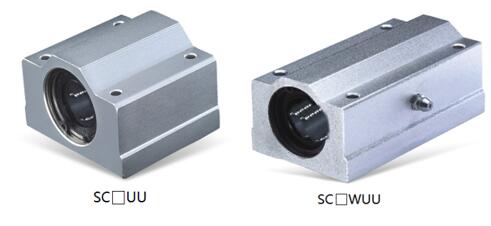 如圖6所示,箱式單元和法蘭是直線軸承的主要區(qū)別是將直線軸承的安裝螺釘從平行于光軸改為垂直于光軸,豐富了直線軸承的安裝形式,試用不同的安裝需求。型號(hào)代碼舉例:SC30UU,加長型為:SC30WUU。