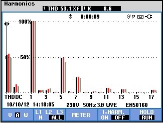 抽油機(jī)改裝AFE2000控制系統(tǒng)后,原變頻控制電源諧波電流含量從53.1%降至3%,典型諧波5、7、11、13、17次消除到幾乎可以忽略程度,綠化抽油機(jī)的配電系統(tǒng),保證了供電質(zhì)量。