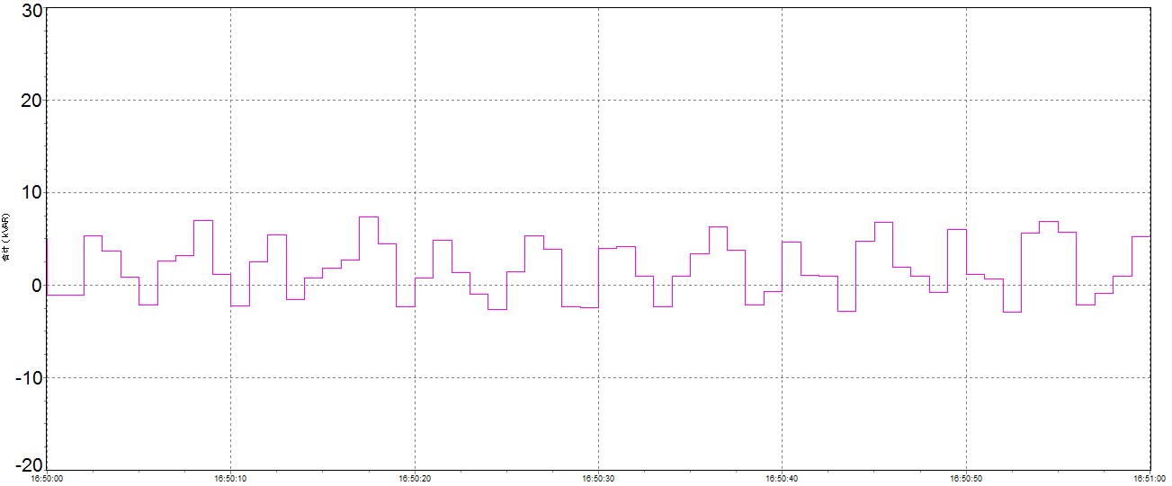 圖3 加裝AFE2000前抽油電機(jī)的無功功率及功率因數(shù)