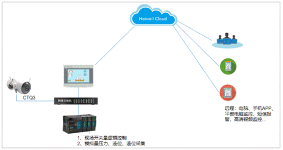 泵房無人值守系統(tǒng)一般應(yīng)用于供水系統(tǒng)中泵站的遠(yuǎn)程監(jiān)控及管理。通過海為云平臺(tái),泵站管理人員可以在供水公司的泵站監(jiān)控中心遠(yuǎn)程監(jiān)測站內(nèi)清水池水位或進(jìn)站壓力、加壓泵組工作狀態(tài)、出站流量、出站壓力等;支持手機(jī)APP、云網(wǎng)站遠(yuǎn)程對(duì)水泵啟動(dòng)設(shè)備手動(dòng)控制、自動(dòng)控制、遠(yuǎn)程控制加壓泵組的啟停;利用海為云攝像機(jī),還可以圖像監(jiān)視站內(nèi)全景及重要工位,實(shí)現(xiàn)泵站無人值守。