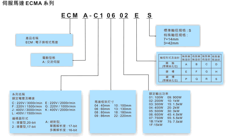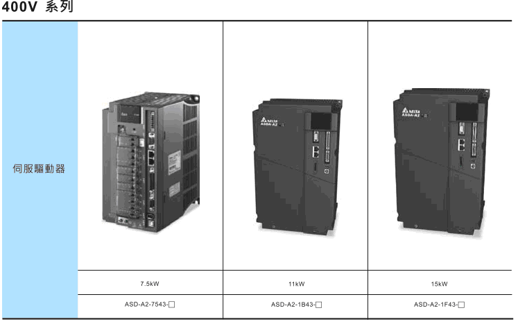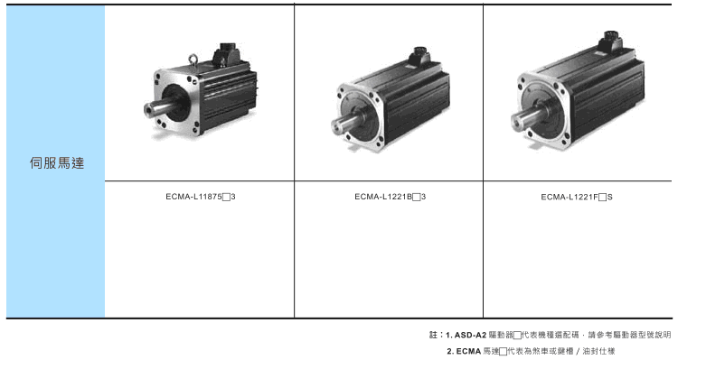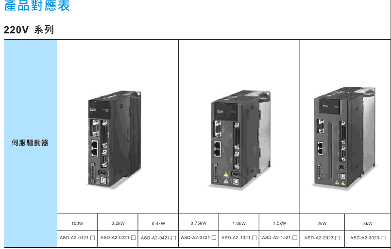 ?ASDA-A2系列共有四個(gè)機(jī)種:ASDA-A2-B, ASDA-A2-L, ASDA-A2-M, ASDA-A2-U