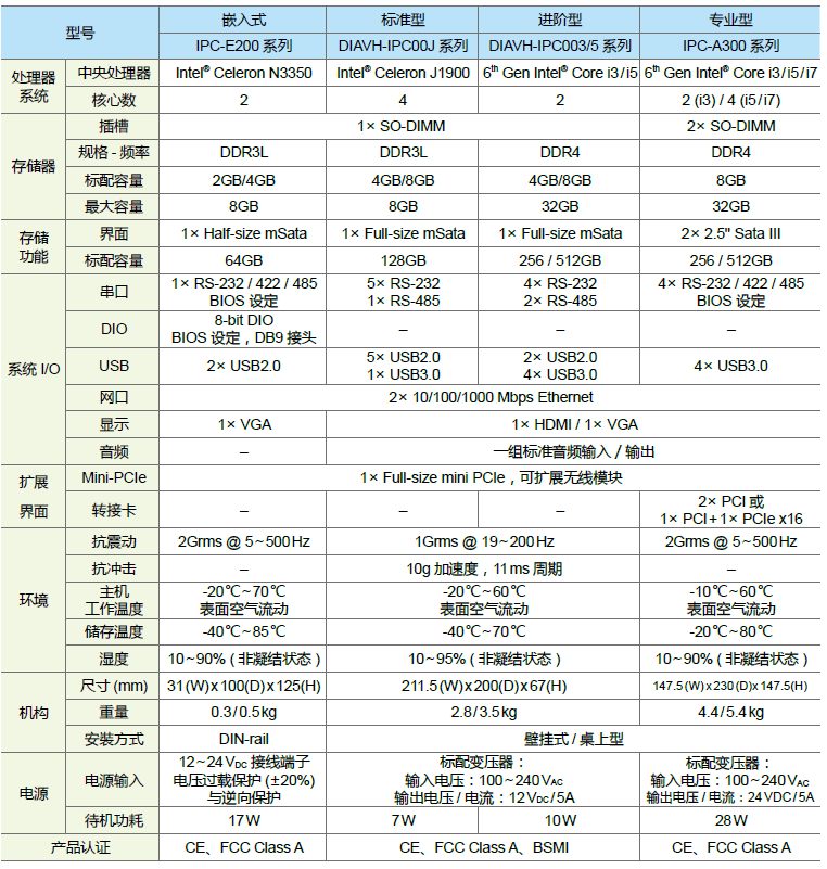 高性能、高可靠、密封無風(fēng)扇的工業(yè)計(jì)算機(jī),板載Intel? Celeron N3350/J1900 & Intel? Core Processor i3/ i5/ i7 處理器,***大8GB RAM 內(nèi)存,整機(jī)具有豐富的 I/O 接口。支持Windows 7/8/10、Linux等操作系統(tǒng)