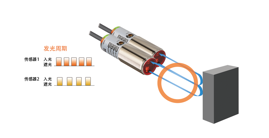 通過調(diào)整傳感器的發(fā)光周期, 不受相鄰傳感器的影響,可緊密安裝。