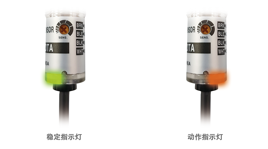 通過穩(wěn)定指示燈(綠色 LED), 動(dòng)作指示燈(黃色 LED),可方便確認(rèn)動(dòng)作狀態(tài)。