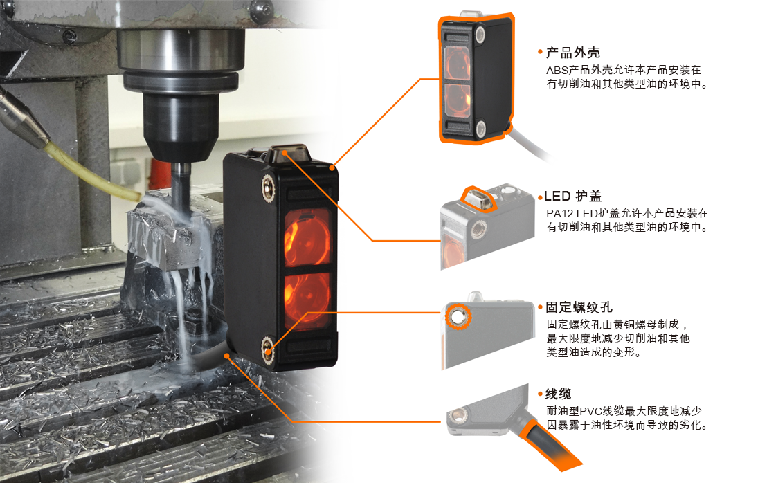 特殊噴涂,耐油型光電傳感器 (針對汽車和機床行業(yè)進行了優(yōu)化)