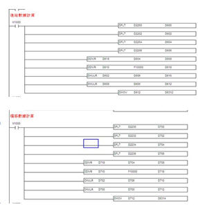 通過速度功能塊,定位功能塊進(jìn)行定位控制進(jìn)給的應(yīng)用。PLC數(shù)據(jù)運(yùn)算程序如圖16。