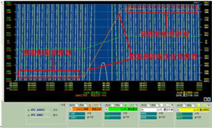 根據(jù)PID算法模型,高速運(yùn)行時,收線放線伺服輸出偏差正負(fù)5轉(zhuǎn)以及張力擺動扭矩正負(fù)1牛。同時監(jiān)視主軸、張力、放線伺服的波形如下圖。其中,主軸波形圖如圖9所示。
