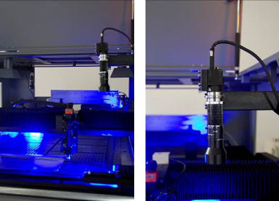 為確保檢測(cè)精度,所以考慮采用一個(gè)相機(jī)各拍攝一個(gè)MARK的方法。本系統(tǒng)中采用2個(gè)相機(jī)和4個(gè)光源的架構(gòu)。