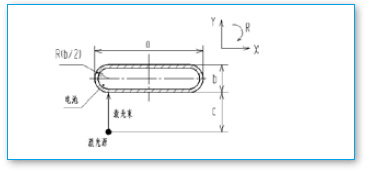 電池形狀由寬度a、厚度b決定,焊接時要求尺寸c保持恒定,即在激光束固定焦距上進行焊接。電池裝在X、Y工作臺上,可由R軸帶動旋轉(zhuǎn)。另包括送料軸。根據(jù)以上要求和條件,確定鋰電池外殼激光焊接過程如下: