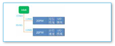 HMI通過RS485接口連接兩臺20PM,通過20PM的不同站號進行訪問。