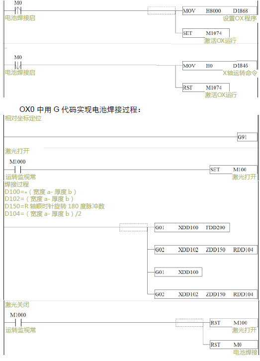 OX0中用G代碼實現(xiàn)電池焊接過程: